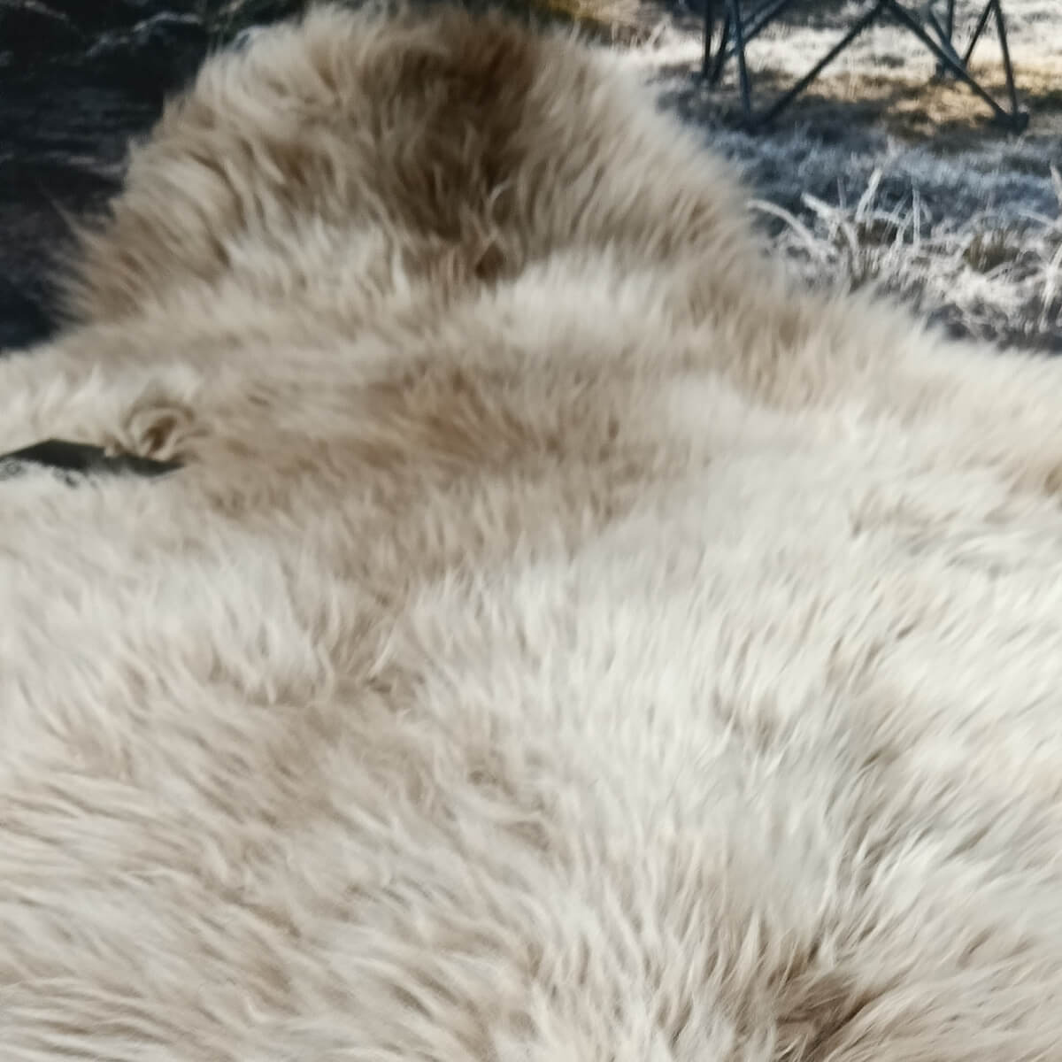 Unique markings throughout the longwool pelt in light brown/white markings, thick longwool pile